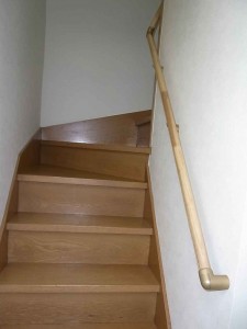 「とにかく何でもいいから早くつけてください」と工務店さんにお願いしていたものですが、階段と同じ木調のいい感じの手すりができて満足しています。