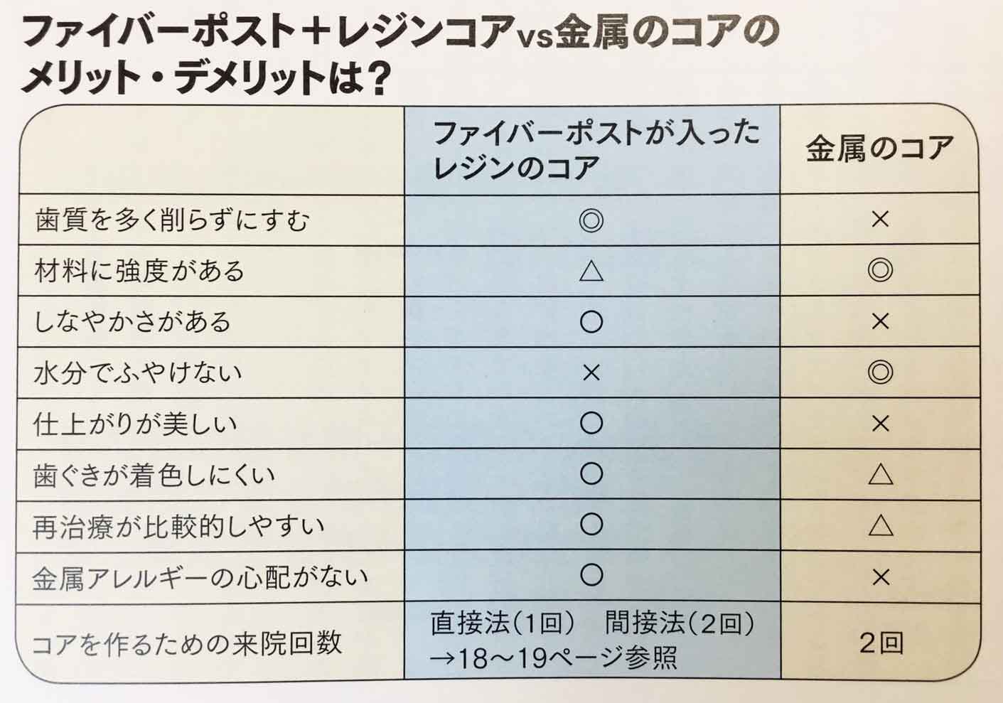 信頼に足る接着システム(*特にポスト先端部(最重要ポイント))をベースにした現在のレジンコア+ファイバーポストは、ここに書かれている以上に臨床では優位でしょう。