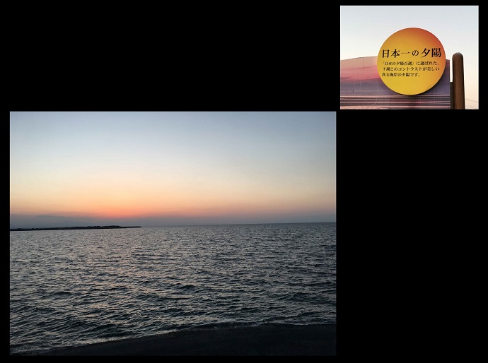 周防灘に面した海岸で、国東半島の西側の付け根に位置し西方に開けているため夕陽の美しさで知られ、日本の夕陽百選に選定されるとともに、おおいた遺産にも「真玉海岸の夕陽」として選定されているということです。