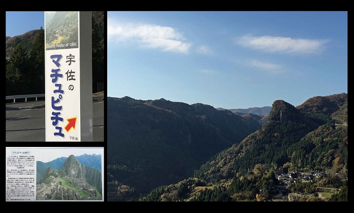 国道387号横の展望所から見る西椎屋地区は、円錐形の山を背景にした棚田と集落の景観が南米ペルーのマチュピチュに似ていることから『宇佐のマチュピチュ』と呼ばれているようです。